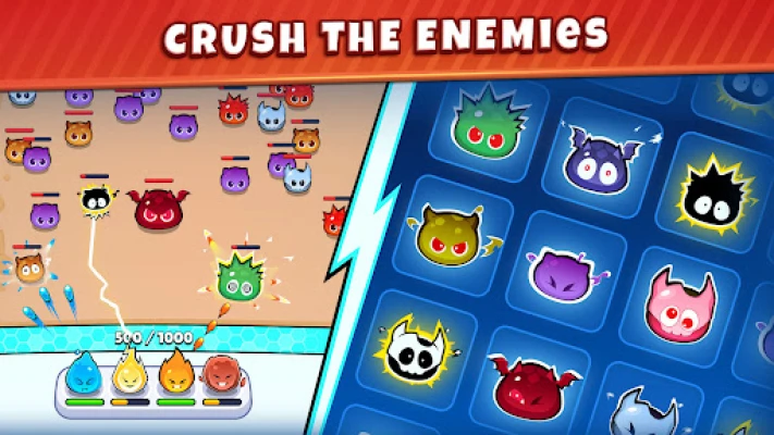 Pertempuran tidak pernah monoton; monster lendir berevolusi dan tumbuh lebih kuat di setiap level baru, menuntut taktik yang terus berkembang dari Anda. Pilih penguat keterampilan yang tepat untuk meningkatkan kekuatan elemen Anda, memastikan mereka memiliki kekuatan dan ketahanan untuk menahan gempuran tanpa henti. Saat Anda maju, buka dan kumpulkan elemen-elemen baru yang lebih perkasa, masing-masing dengan keahlian khusus untuk memperkaya strategi perang Anda dan menaklukkan musuh-musuh terberat.