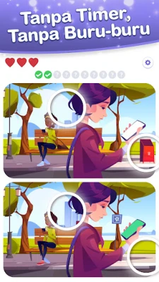 Dengan 'Find Differences Search & Spot', tekanan waktu tidak ada. Kamu bebas menjelajahi setiap adegan sepuasnya, bahkan dengan bantuan petunjuk tak terbatas yang selalu siap membantu. Fitur pembesar yang intuitif memungkinkanmu memperbesar setiap sudut, memastikan tidak ada perbedaan yang luput dari pandanganmu. Nikmati antarmuka yang bersih dan mudah digunakan, dirancang agar kamu sepenuhnya fokus pada tantangan tanpa gangguan, melatih fokus dan kemampuan observasimu secara alami dan menyenangkan.