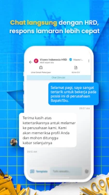 Rasakan kemudahan proses melamar kerja yang belum pernah ada sebelumnya. Tidak perlu lagi mengisi formulir panjang atau mengunggah dokumen berulang kali; dengan Glints TapLoker, satu sentuhan sudah cukup untuk mengirimkan lamaran Anda secara instan. Nikmati komunikasi langsung dengan HRD untuk menanyakan status lamaran, mendiskusikan detail pekerjaan, atau menjadwalkan wawancara, semuanya dalam genggaman. Pantau setiap perkembangan lamaran Anda secara *real-time* dengan notifikasi terkini, mulai dari saat HRD melihat lamaran hingga pembaruan jadwal wawancara, agar Anda selalu selangkah lebih maju dalam meraih karier yang diidamkan.